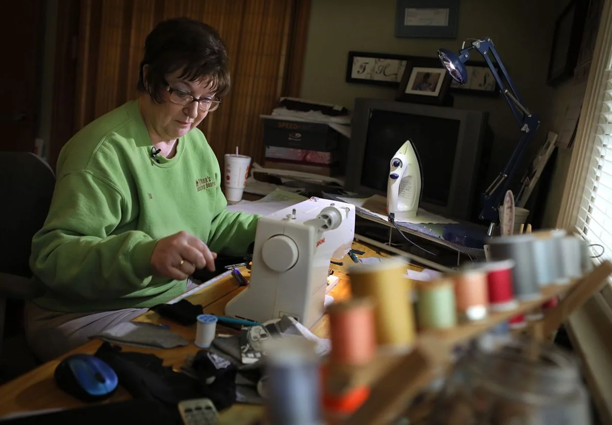 Thea Gain in her workshop creating a custom Blessing Bear for a customer.